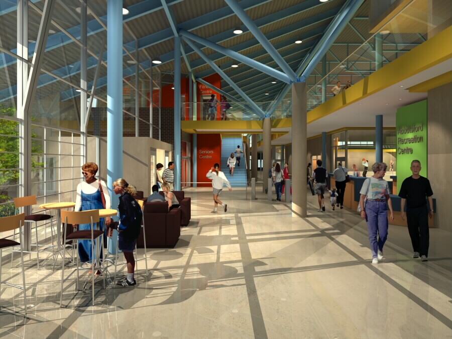 community recreation centre lobby, abbotsford, bc architect: hughes condon marler, vancouver, british columbia